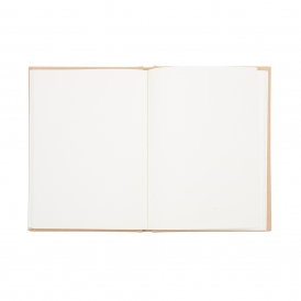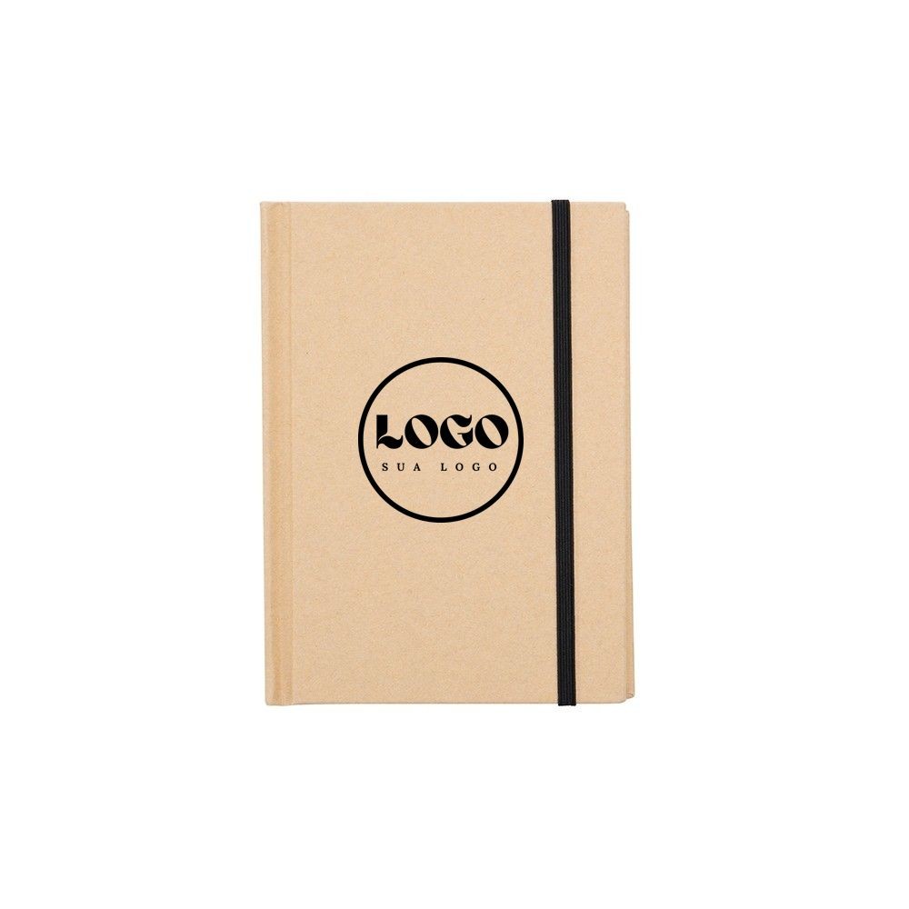 Descrição: Bloco de Anotações Ecológico, material em kraft. Frente e verso liso com fita elástica para fechar. Contém aproximadamente 80 folhas amareladas sem pauta.