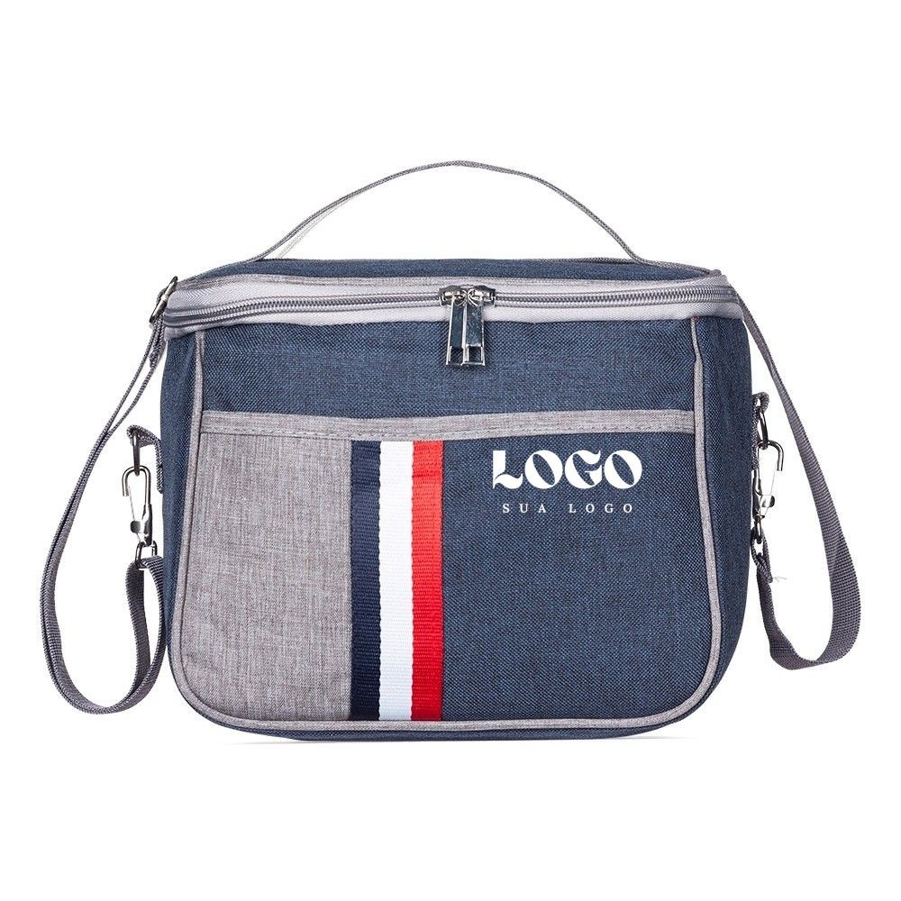 Descrição: Bolsa térmica de nylon 7,6 litros com dois compartimentos e bolso frontal. Compartimento principal com revestimento térmico. Acompanha alça transversal.