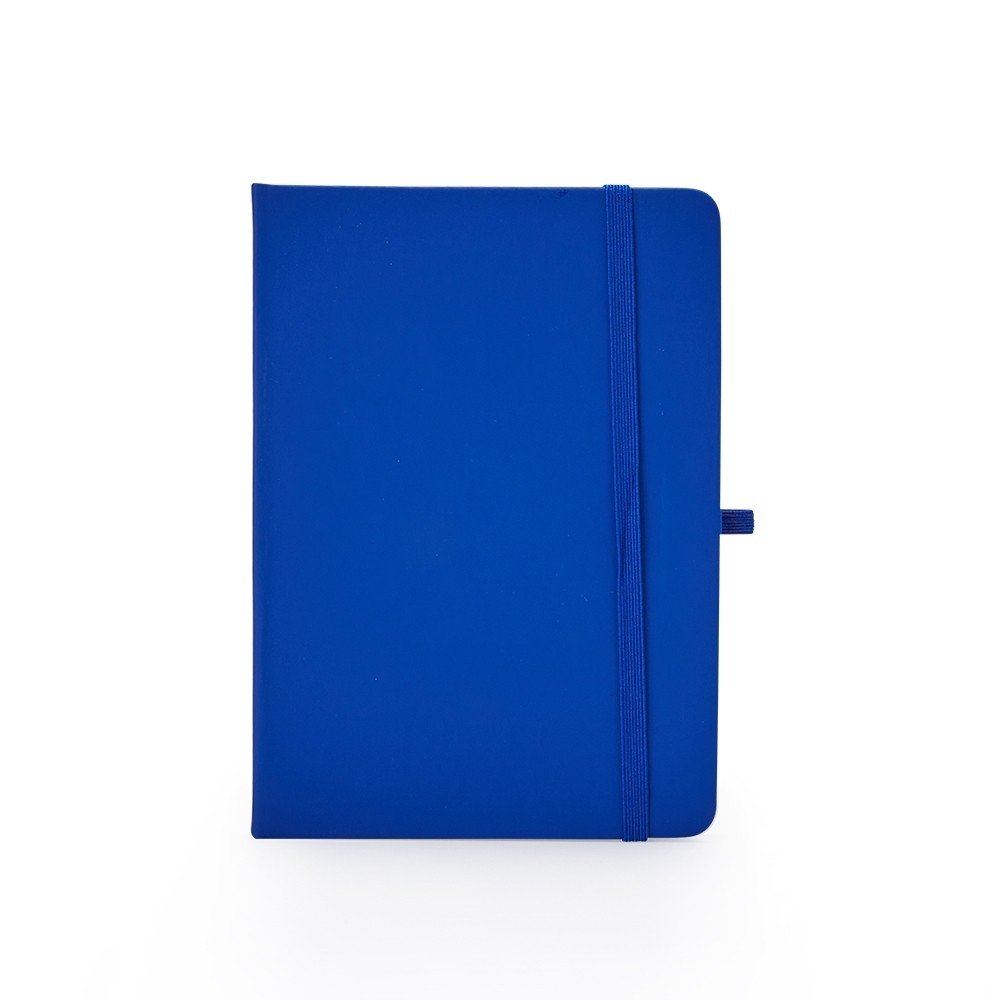 Descrição: Caderneta emborrachada com suporte para caneta, elástico para lacre e marcador de página em cetim, contém aproximadamente 80 folhas com pauta na cor branca.