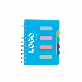 Descrição: Caderno pequeno com 4 divisórias e abas para identificações, capa plástica com wire-o metálico. Contém aproximadamente 103 folhas marfins e folha inicial com tarjas para organizar e identificar as divisórias.