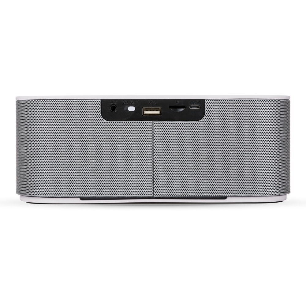 Descrição: Caixa de Som Multimídia. Design fino e material plástico resistente, possui: botão On/Off no verso, botão >|| (MODE), botão < retroceder faixa ou diminuir volume, botão > avançar faixa ou aumentar volume, botão PLAY/PAUSE e atender chamadas, entrada P2/auxiliar(caixinha de som pode ser conectada no computador, basta segurar o botão central para alternar o modo), entrada microUSB, microf