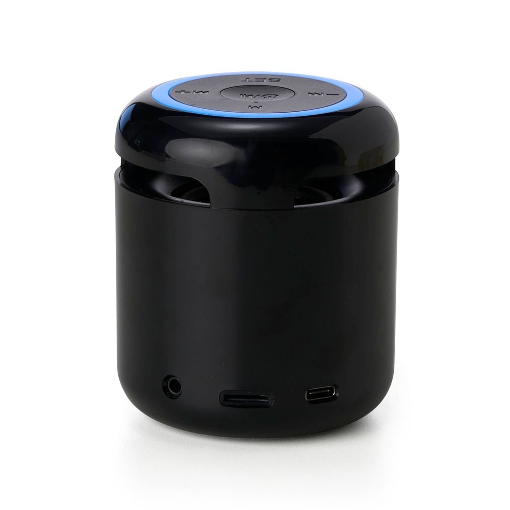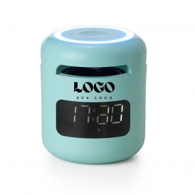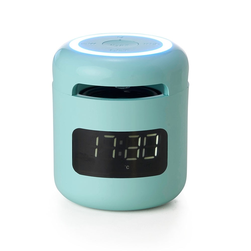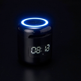 Descrição: Caixa de som multimídia com relógio despertador. Produzida em plástico e com borrachas antiderrapantes na área inferior, a caixa de som tem bateria de longa duração, display de LED na área frontal, e anel de led brilhante na parte superior. A caixa de som executa nos modos bluetooth, rádio FM, cartão TF-microSD e entrada auxiliar P2. Acompanha cabo USB e manual em inglês e chinês.