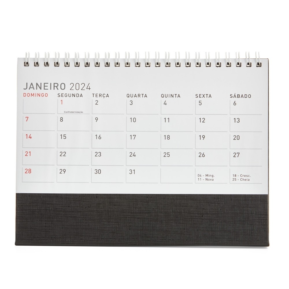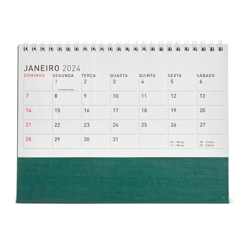 Descrição: Calendário de mesa 2024 em papel couche 115g, base em percalux.
