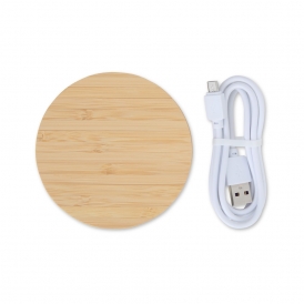 Descrição: Carregador via indução formato disco com indicador de funcionamento em led, feito em Bambu. Compatível com smartphones com tecnologia por indução. Acompanha cabo USB. OBS.: O CARREGADOR APENAS TRANSFERE CARGA, ELE NÃO POSSUI BATERIA PARA ARMAZENAMENTO (NÃO É UM POWER BANK).