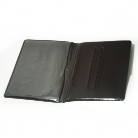 Descrição: Carteira porta documento em couro sintético de frente e verso liso, parte interna com bolso plástico e duas divisórias para cartões. OBS.: PEDIDOS APENAS MÚLTIPLOS DE 50 PEÇAS!