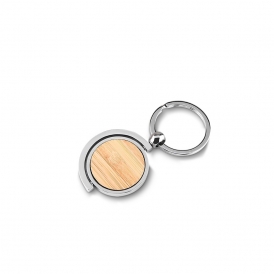 Descrição: Chaveiro de metal, com detalhe circular de Bambu. Acompanha estojo de papel.