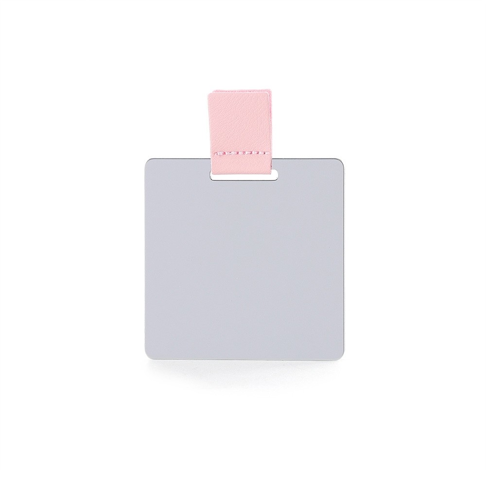 Descrição: Espelho inquebrável de aço inoxidável ultra fino com verso escovado e alça em couro sintético. Acompanha estojo de couro sintético.