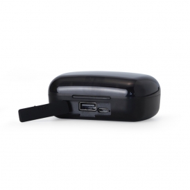 Descrição: Fone de ouvido bluetooth com comandos touch e case carregador. Com display de bateria e fechamento magnético, o case pode ser utilizado também como um power bank de baixa capacidade para emergências . Material plástico. Acompanham 2 pares de eartips em diferentes tamanhos e cabo USB.