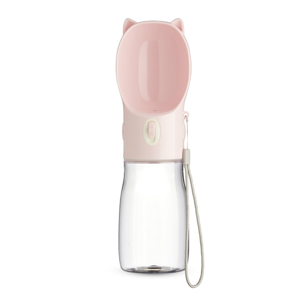 Descrição: Garrafa bebedouro para pet feita em plástico com capacidade de 420ml. Basta acionar o botão para liberar o fluxo da água através da tigela. Acompanha alça de nylon para transporte.