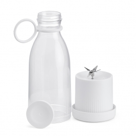 Descrição: Mini liquidificador portátil com capacidade de 380ml. Contém tampa rosqueável plástica com alça emborrachada para transporte, ventoinha inox 6 lâminas e base plástica com borrachas antiderrapantes. Acompanha cabo USB. Obs. (Para o funcionamento do produto a quantidade total de frutas/água adicionadas não deve exceder 300ml).