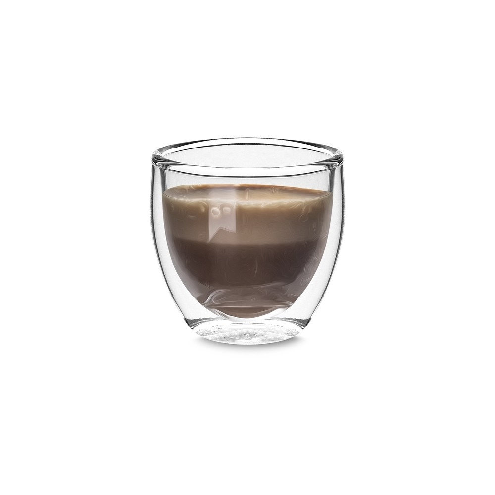 Descrição: kit com 2 copos de vidro borossilicato parede dupla com capacidade para 90ml.