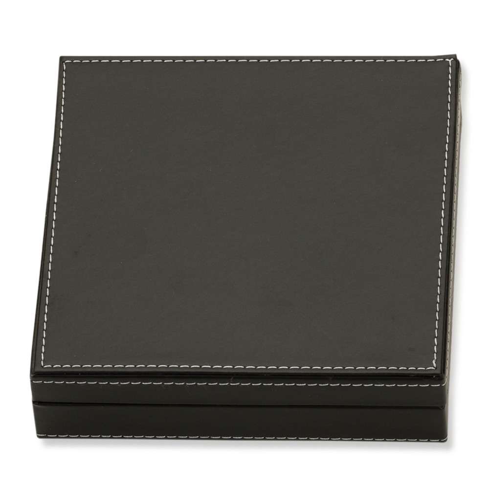 Descrição: Kit vinho 5 peças em estojo de couro sintético com tampa, verso e parte interna revestida com veludo. Possui Wine collar, bico condutor com tampa, tampa de bico, saca rolhas e cortador de lacre.