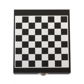 Descrição: Kit vinho 4 peças em estojo tabuleiro de xadrez. Contém wine collar, tampa de bico, bico condutor com tampa e saca-rolhas metálico com lâmina de corte e abridor de garrafa. Estojo com trava de segurança e área interna com berço de espuma, acompanham 32 peças de xadrez e plaquinha metálica para personalização.