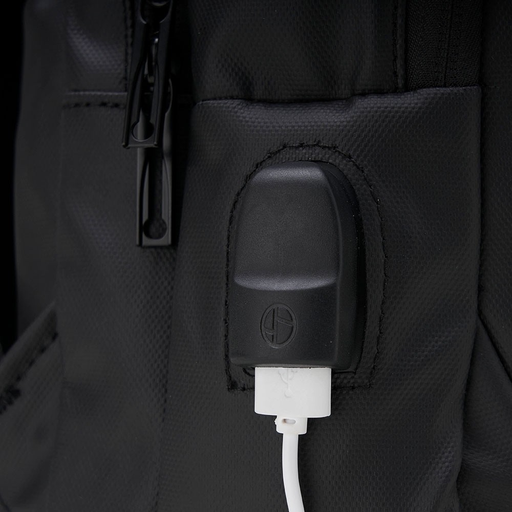 Descrição: Mochila em couro sintético 17 litros resistente à água com cinco compartimentos, sendo o principal com bolso para notebook 156. Com divisórias internas para acessórios, a mochila possui suporte externo usb, alça para encaixe em malas de viagem e duas alças de mãos, sendo uma delas lateral para o transporte da mochila no modo pasta.