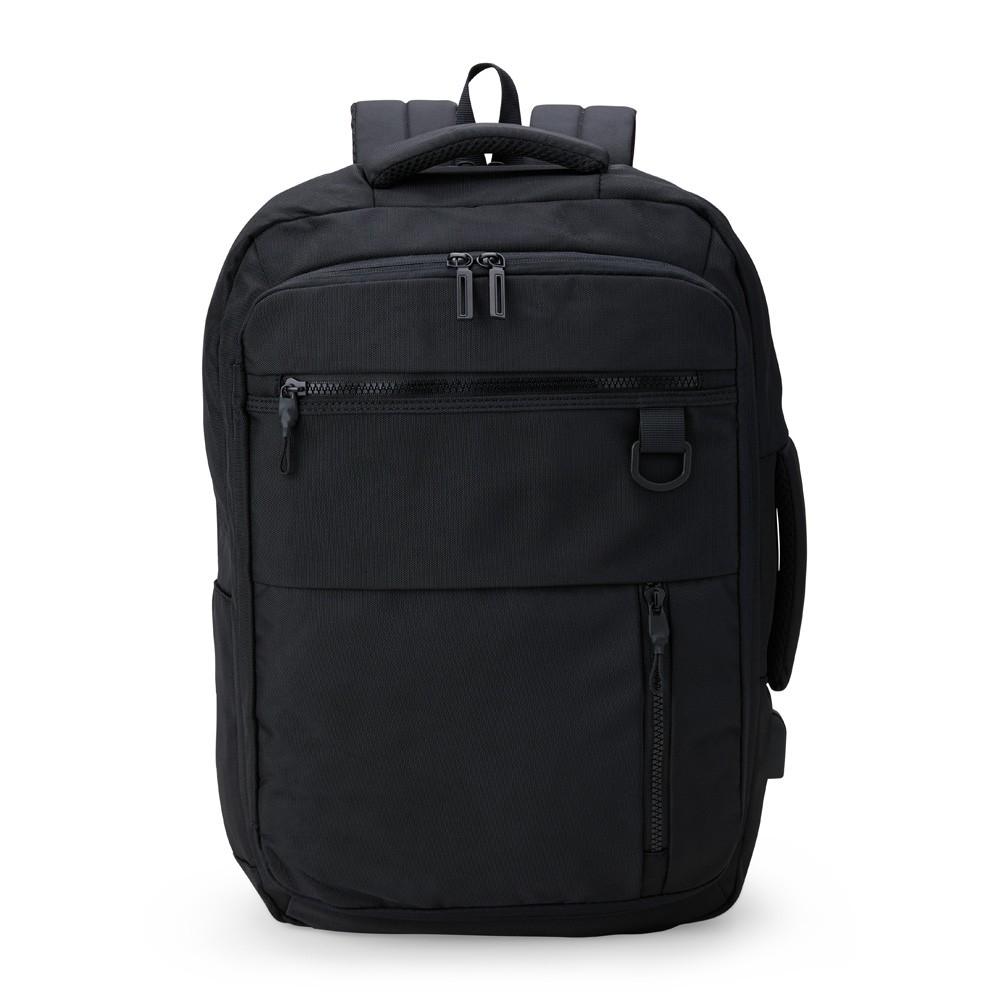 Descrição: Mochila confeccionada em Nylon 20 Litros com 4 compartimentos, sendo o principal com bolso para notebook 15,6. Possui um bolso externo, bolsos e divisórias internas para acessórios, a mochila possui suporte externo USB, alça com bolso integrado para cartões, alça para engate em malas de viagem e duas alças de mãos, sendo um delas para o transporte da mochila no formato pasta.