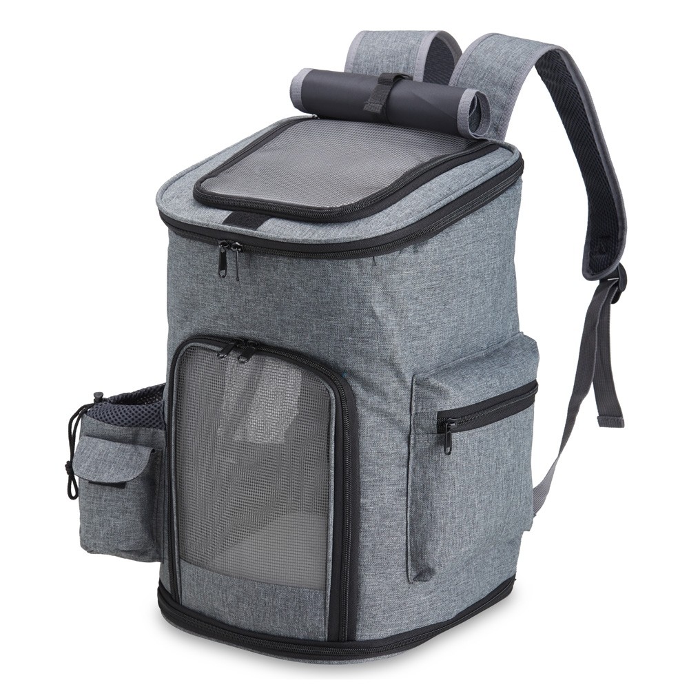 Descrição: Mochila para transporte de pets, confeccionada em tecido Oxford, apresenta um compartimento lateral e bolsos adicionais. Seu tapete dupla face, com uma camada aveludada, foi projetada para garantir o máximo conforto ao pet. Equipada com telas respiráveis em nylon, esta mochila possui duas aberturas superiores: uma completa e outra parcial, com cobertura ajustável. Além disso, conta com