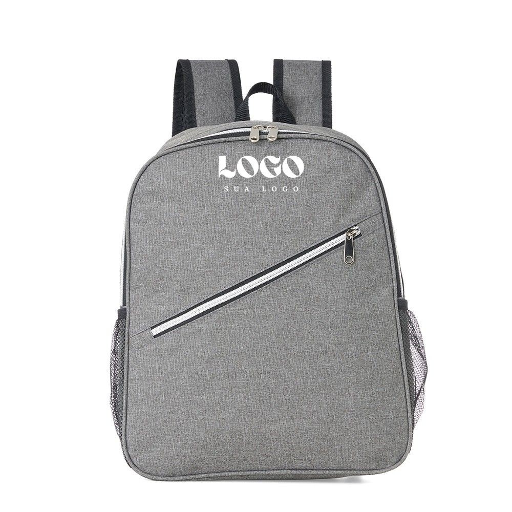 Descrição: Mochila térmica de poliéster 15 litros com dois compartimentos e bolsos laterais em malha. Compartimento principal com revestimento térmico.