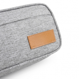 Descrição: Necessaire confeccionada em poliéster com detalhes em couro sintético, possui dois compartimentos com zíper, alça para transporte e alça pequena para acesso de chaveiro ou gancho.