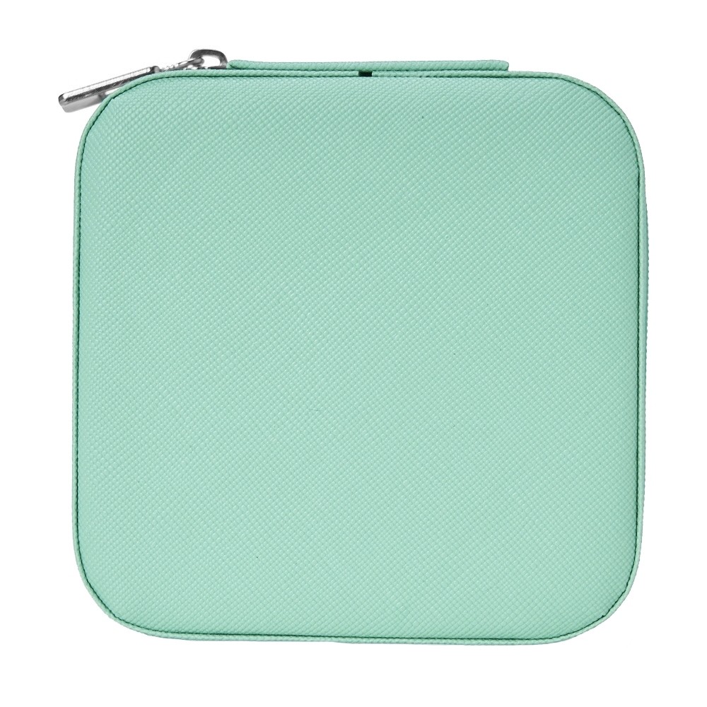 Descrição: Porta joias de couro sintético com revestimento aveludado. Possui compartimentos internos para anéis, brincos, pulseiras e colares.