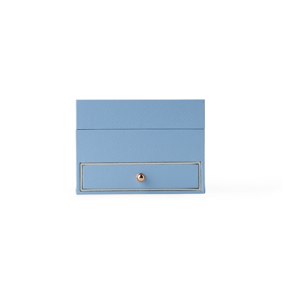 Descrição: Porta joias de couro sintético com revestimento aveludado. Possui gaveta e compartimentos internos para anéis, brincos, pulseiras e colares.