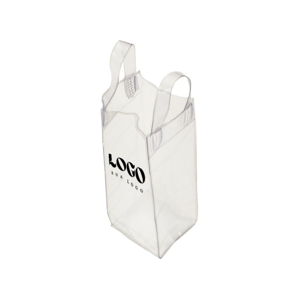 Descrição: Sacola plástica para gelo com alça. Icebag serve para transportar garrafas exemplo: vinho, champagne, vodka... Basta colocar gelo e transportar seu cooler prático. OBS.: Para prolongar a vida útil do material pvc, atente-se as condições ideais de armazenamento: mantenha o material em local seco e arejado, livre da exposição ao sol e altas temperaturas. Após a utilização da icebag com ge