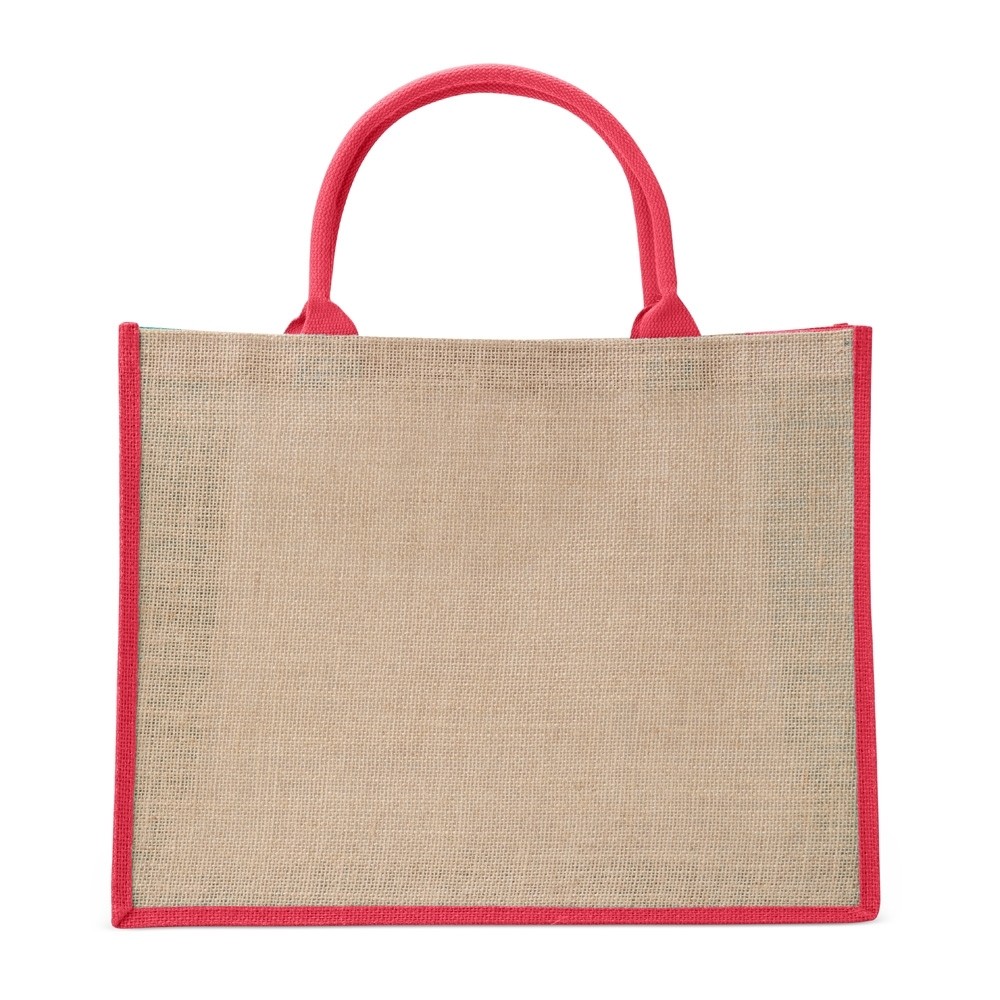Descrição: Sacola ecológica confeccionada em juta com alças costuradas na parte interna.