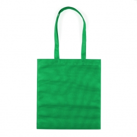 Descrição: Sacola colorida com alça em material TNT, possui símbolo ecológico/reciclável na costura da alça.